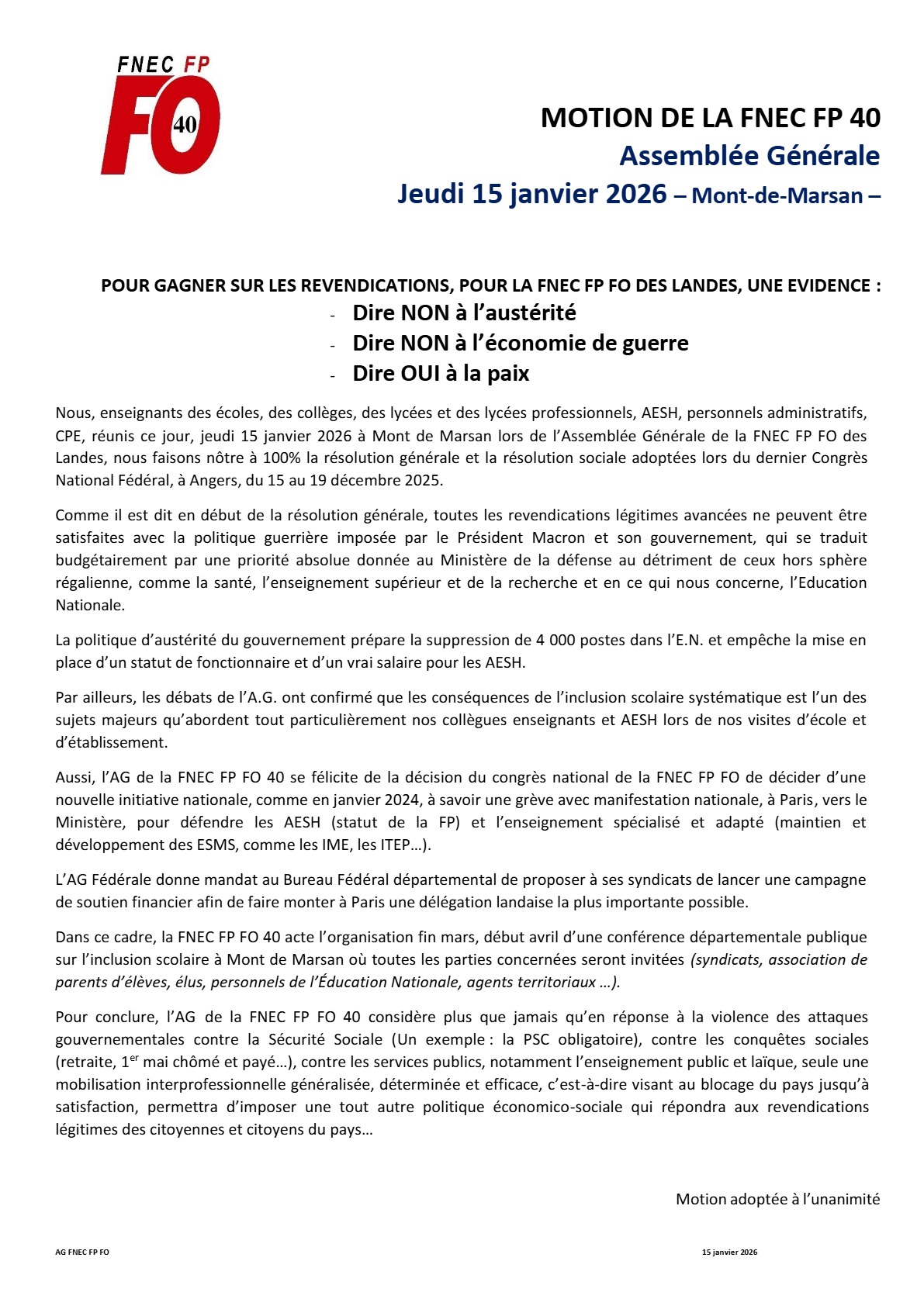 Préparer la carte scolaire 2026 avec le Snudi FO des Landes, c'est choisir le seul syndicat représentatif qui VOTERA CONTRE les cartes scolaires tant que toutes les conditions pour travailler sereinement ne seront pas réunies.