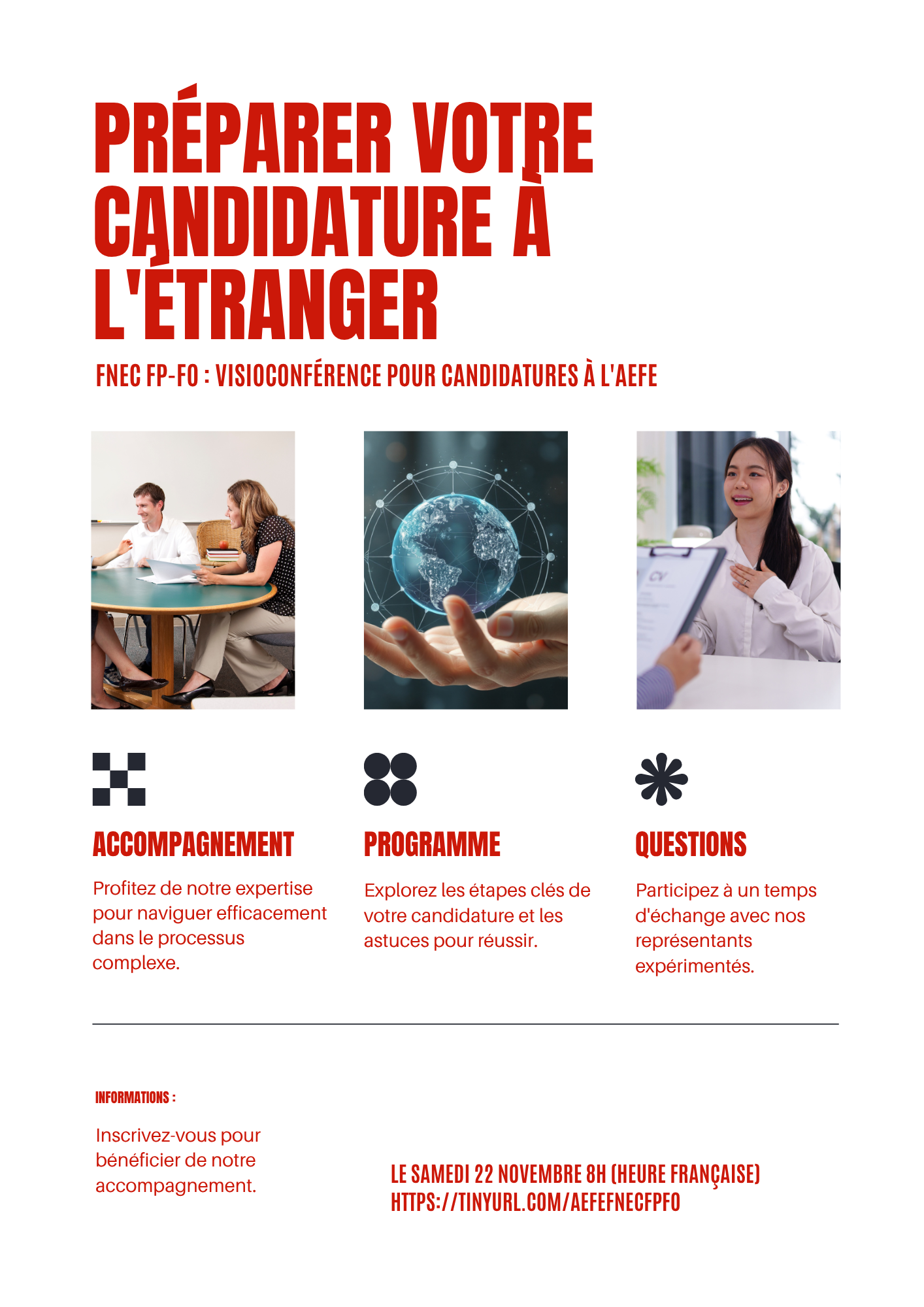 Une visio est programmée pour les camarades souhaitant préparer une candidature pour un poste de détaché à l'étranger dans le réseau AEFE .