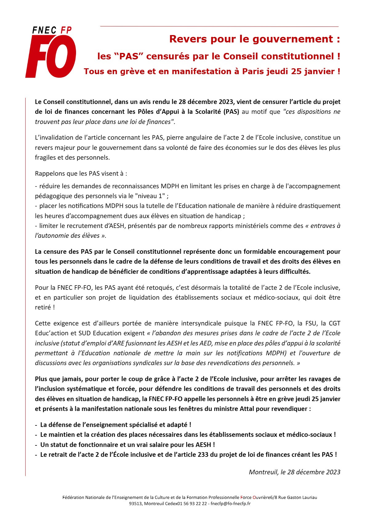 Lire le 4 pages de la FNEC FP FO 40 en pièce jointe