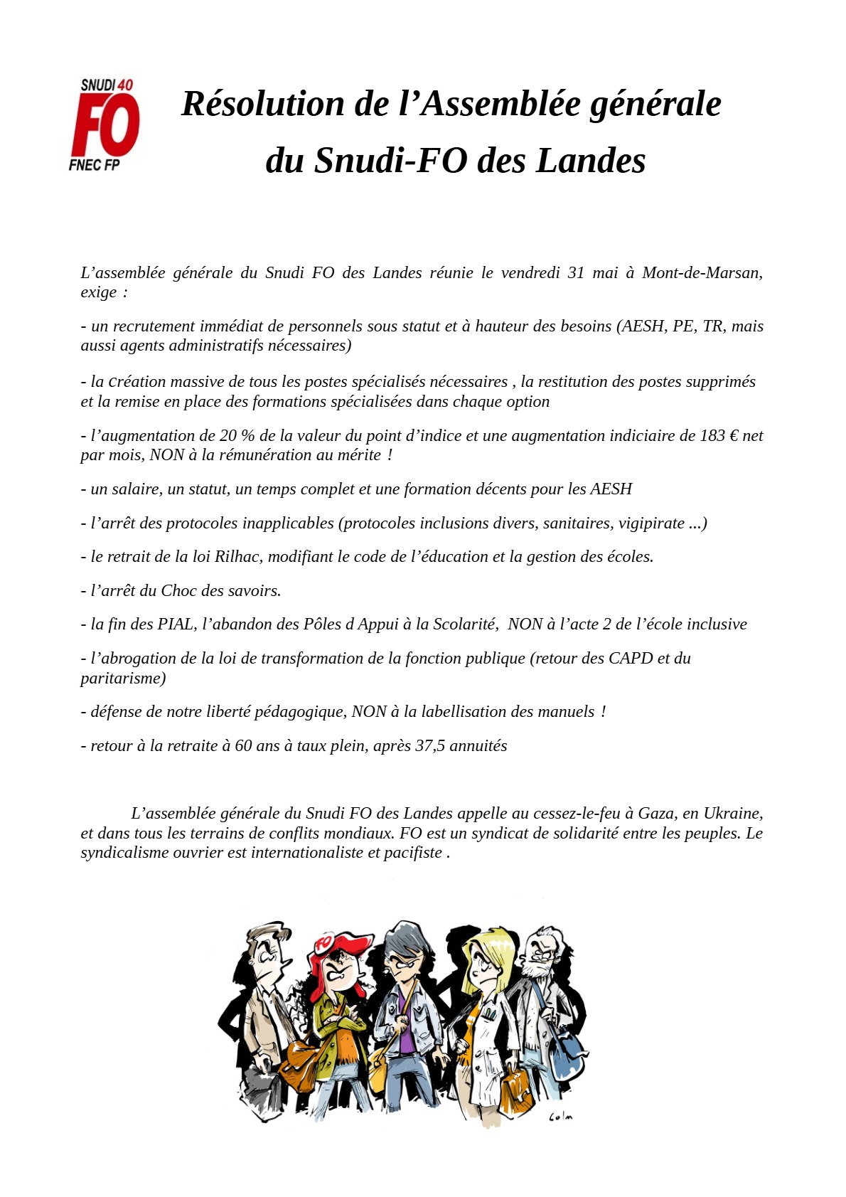 Le Snudi FO des Landes a défendu toutes les situations qui lui ont été confiées. Une ouverture à l'école maternelle de Capbreton, se verra réétudiée en septembre