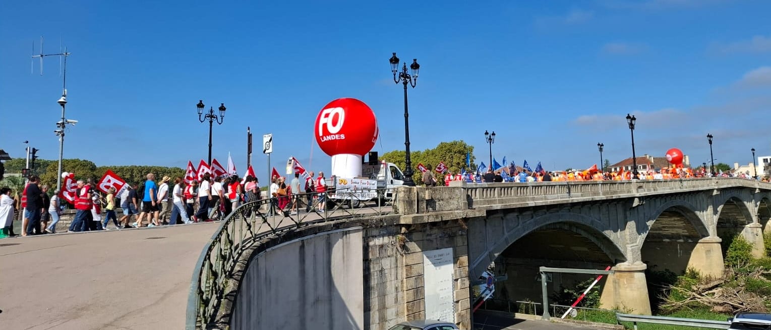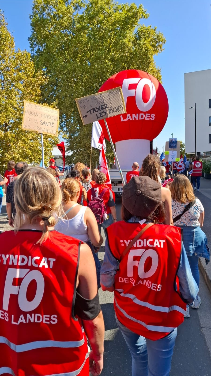 De nombreux grévistes FO ! A l'action , des tractages sur les ronds points de Dax et de Mont-de-Marsan. Rassemblement devant l'hôpital de Dax et manifestation bien animée par FO, vu le nombre de manifestants regroupés derrière notre camion ! Merci aux syndiqués mobilisés !