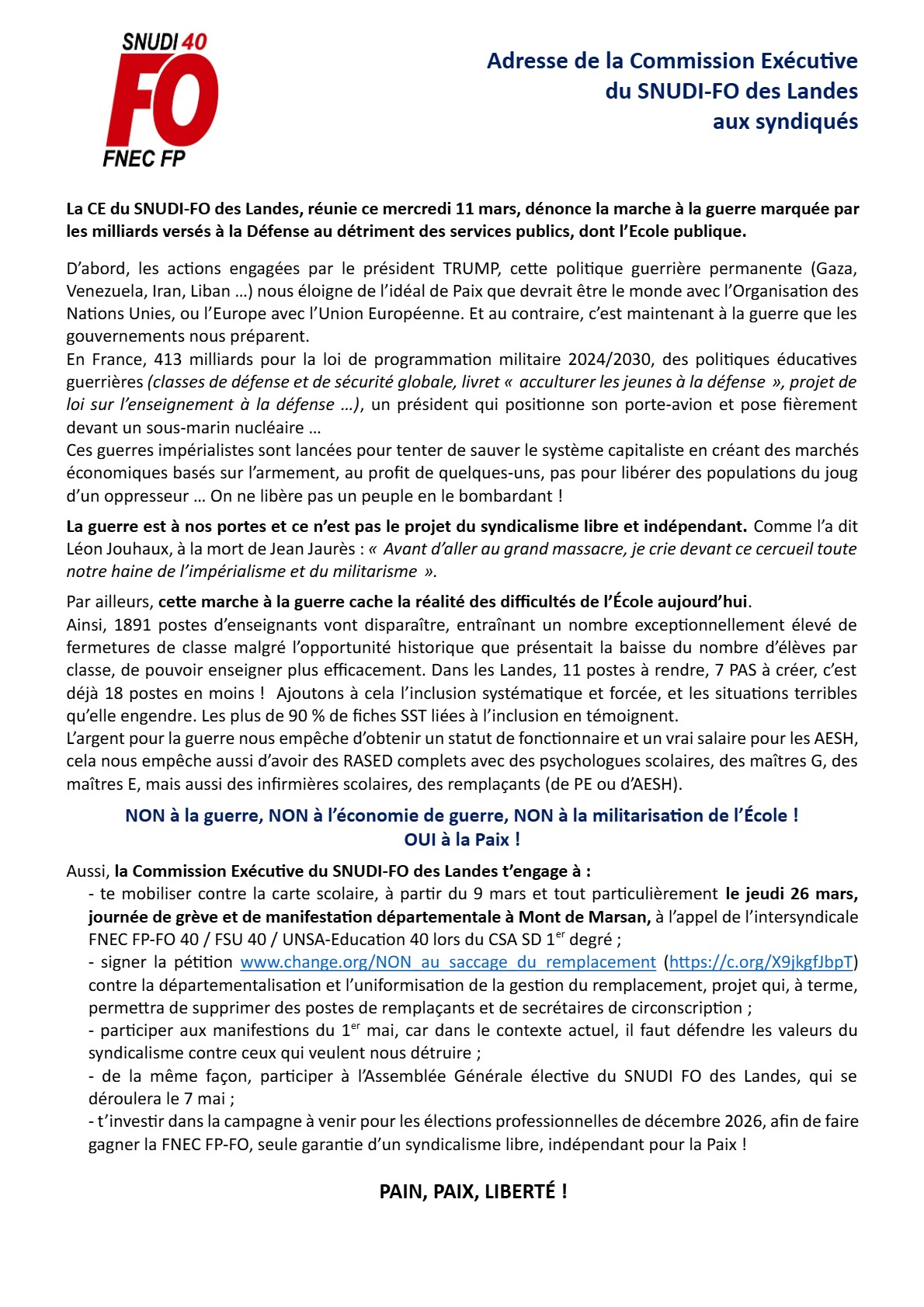 SNUDI-FO 40- Adresse de la CE aux syndiqués.pdf